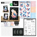 De 3D Velvet Cards set bevat alles wat je nodig hebt om prachtige, feestelijke wenskaarten te maken met een elegant fluweelontwerp. Deze set omvat een push-out vel en een sentiment sheet met hartverwarmende teksten in zowel het Nederlands als Engels. Daarnaast krijg je 3 witte enveloppen, een sfeervol achtergrondpapier en 3 luxe fluwelen kaarten die heerlijk zacht aanvoelen.